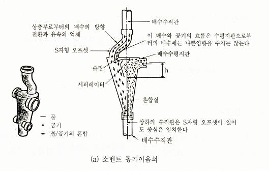 이 방식은 스위스의 프리츠 소머 (Fritz Sommer)가 1961년에 개발한 시스템이다. 배수수직관과 각층 배수수평지관의 접속부분에 공기혼합이음쇠(aerator fitting ; 소벤트 통기 이음쇠)를, 배수수직관과 배수수평주관의 접속부분에 공기분리이음쇠(deaerator fitting ; 소벤트 45°× 2 곡관)를 설치하여 배수하는 방식이다.
